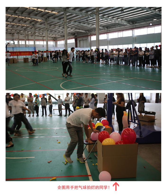 【游戲規(guī)則:男女搭配背靠背夾住氣球,從起點跑至終點并把氣球坐炸,以坐炸氣球的數(shù)量判斷勝負?!?/span>