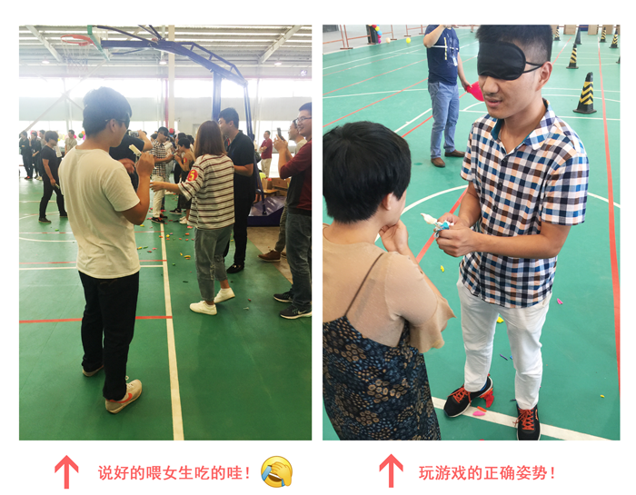 【游戲規(guī)則:男生在起點蒙上雙眼并拿上一根雪糕,原地轉五圈后繞過障礙物跑向終點,找到相應號碼的女生后喂她把雪糕吃完(注意:是喂女生吃,不是自己吃!),最終以吃完雪糕的順序判斷勝負!】