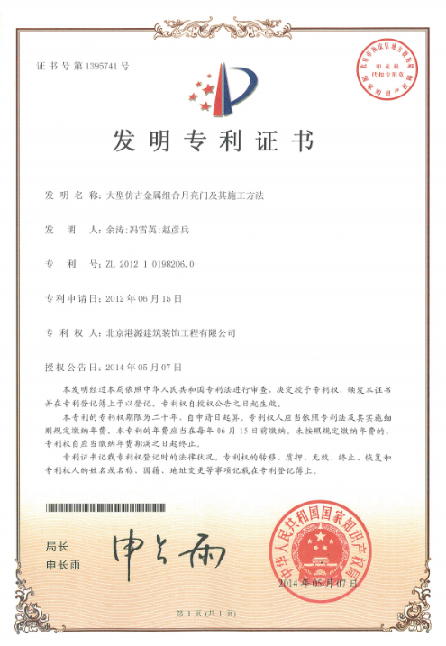 發(fā)明專利-大型仿古金屬組合月亮門及其施工方法