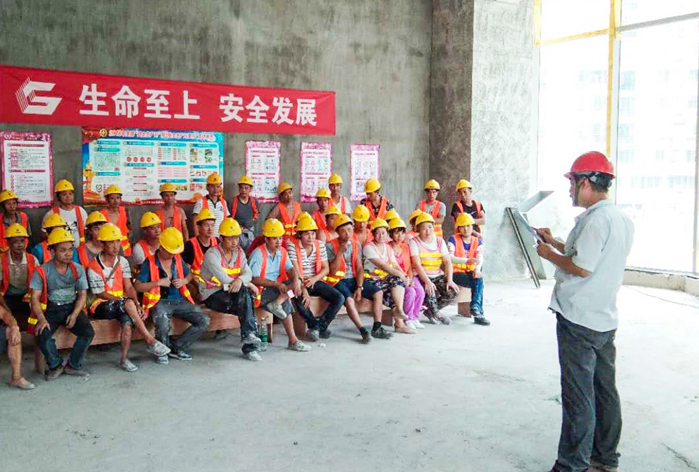 廈門華潤(rùn)中心項(xiàng)目生產(chǎn)經(jīng)理對(duì)新進(jìn)場(chǎng)施工人員進(jìn)行安全生產(chǎn)知識(shí)培訓(xùn)。
