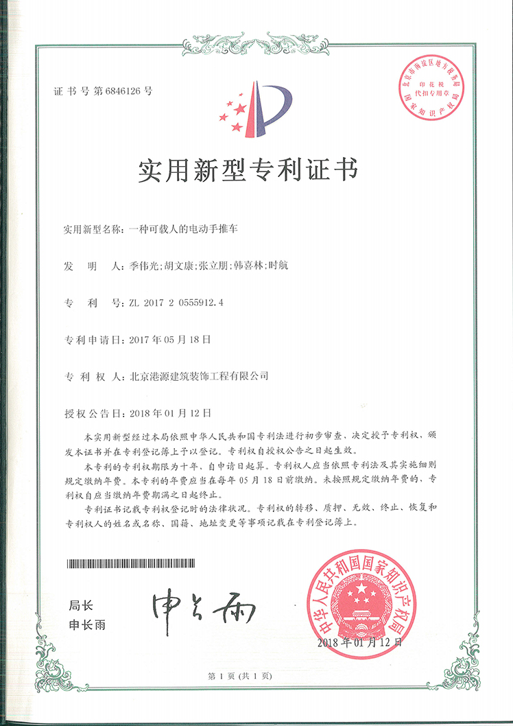 實(shí)用新型-一種可載人電動(dòng)手推車