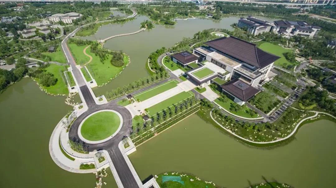▲港源施工區(qū)域——會展中心會議館公共廣場(硬質(zhì)景觀、水景綠化)