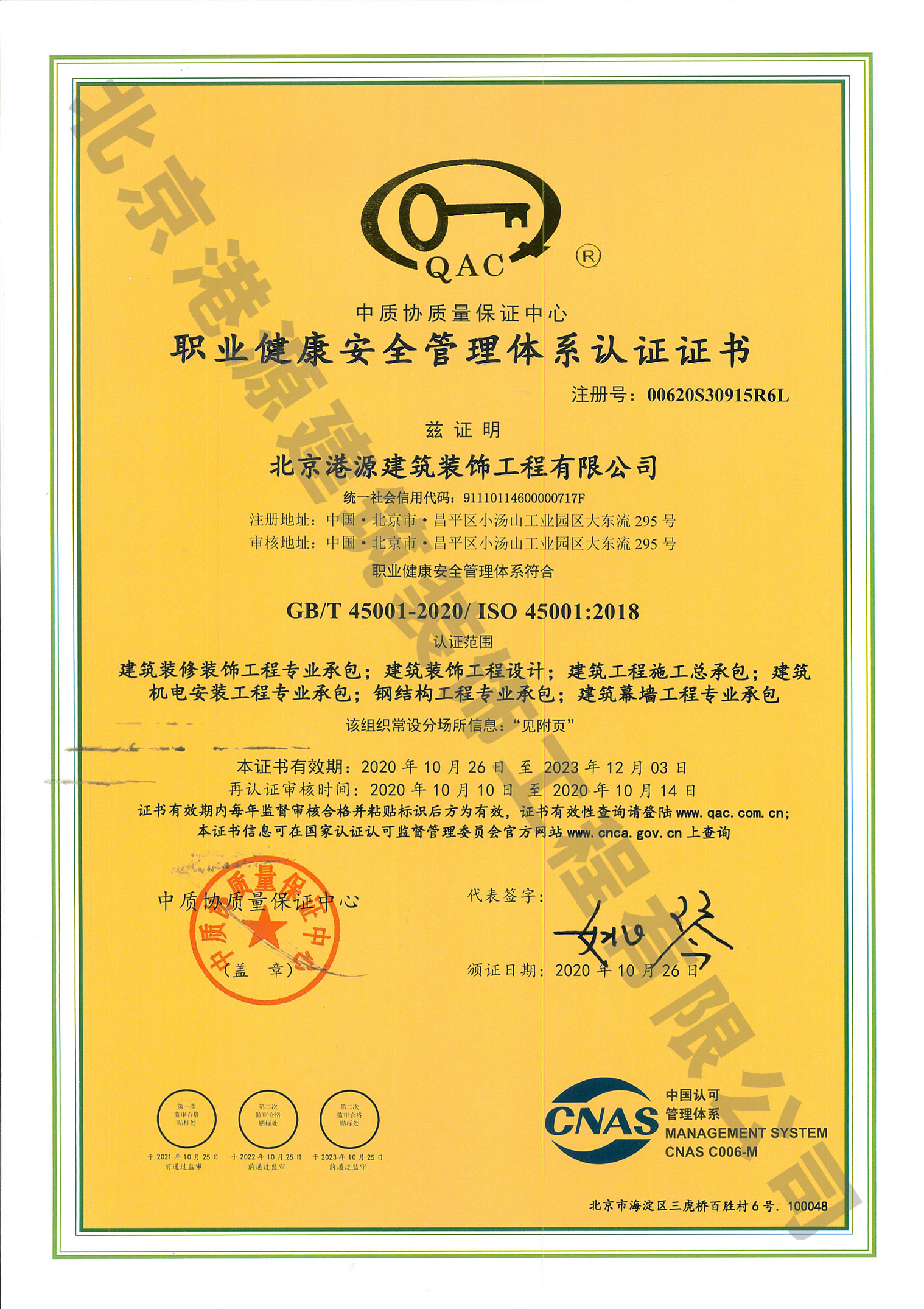 職業(yè)健康安全管理體系認(rèn)證證書