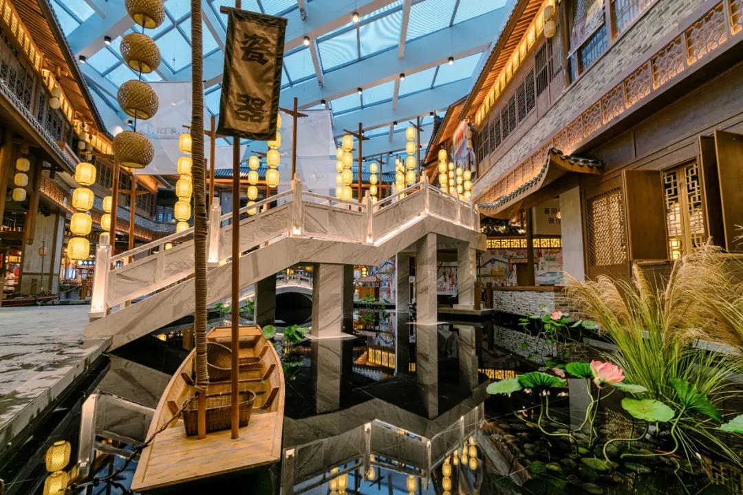 襄陽華僑城奇幻度假區(qū)奇妙鎮(zhèn)位于襄陽市東津新區(qū),總投資16億元,占地14.3萬平方米,是結(jié)合南船北馬的漢水特色,融合市井文化、場景體驗等多元屬性為一體的文旅融合型商業(yè)綜合體。港源裝飾負(fù)責(zé)奇妙鎮(zhèn)『錦繡襄陽』主題館、『銅鞮巷』美食街等仿古風(fēng)格區(qū)域以及43個現(xiàn)代風(fēng)格電梯廳的主題包裝和精裝修施工。