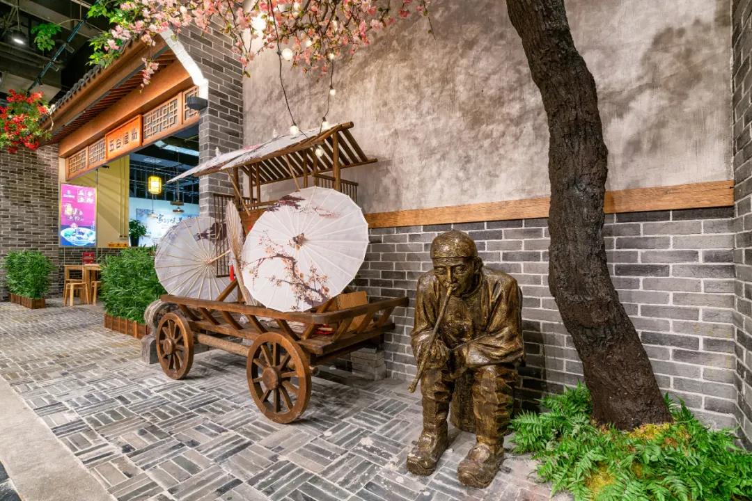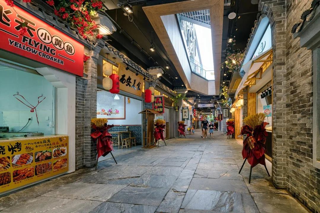 在『銅鞮巷』美食街施工過程中,港源團(tuán)隊為了重現(xiàn)千年前的人文環(huán)境,制作仿古部件及石材時毅然決定尋找老工匠手工訂制雕刻,為42座鋪面分別呈現(xiàn)不同的主題風(fēng)格,以此展現(xiàn)出“一店一品一特色”的街區(qū)風(fēng)貌。