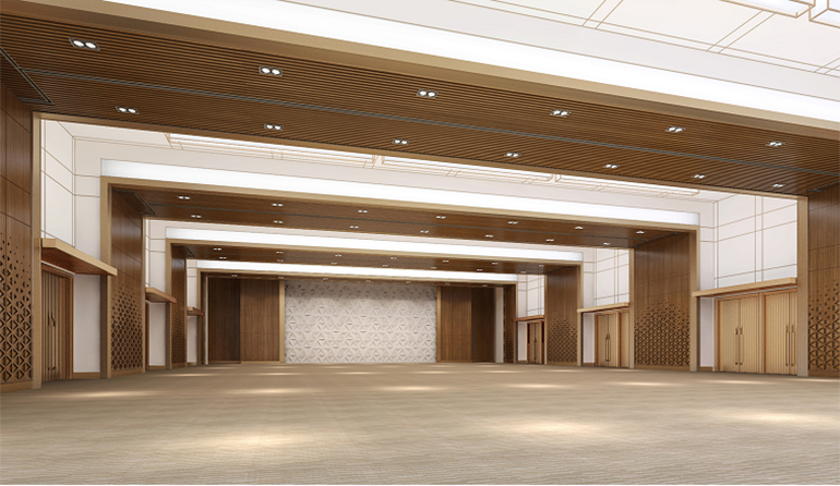 港源裝飾負(fù)責(zé)酒店康體一、二層及宴會廳一、二層超高公區(qū)內(nèi)裝的精裝修施工。