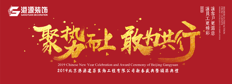 2019年1月30日,正值萬象更新之際,港源裝飾成立26年來規(guī)模最大的一次全員聚會(huì)——聚勢(shì)而上,敢為共行2019港源裝飾新春盛典暨頒獎(jiǎng)典